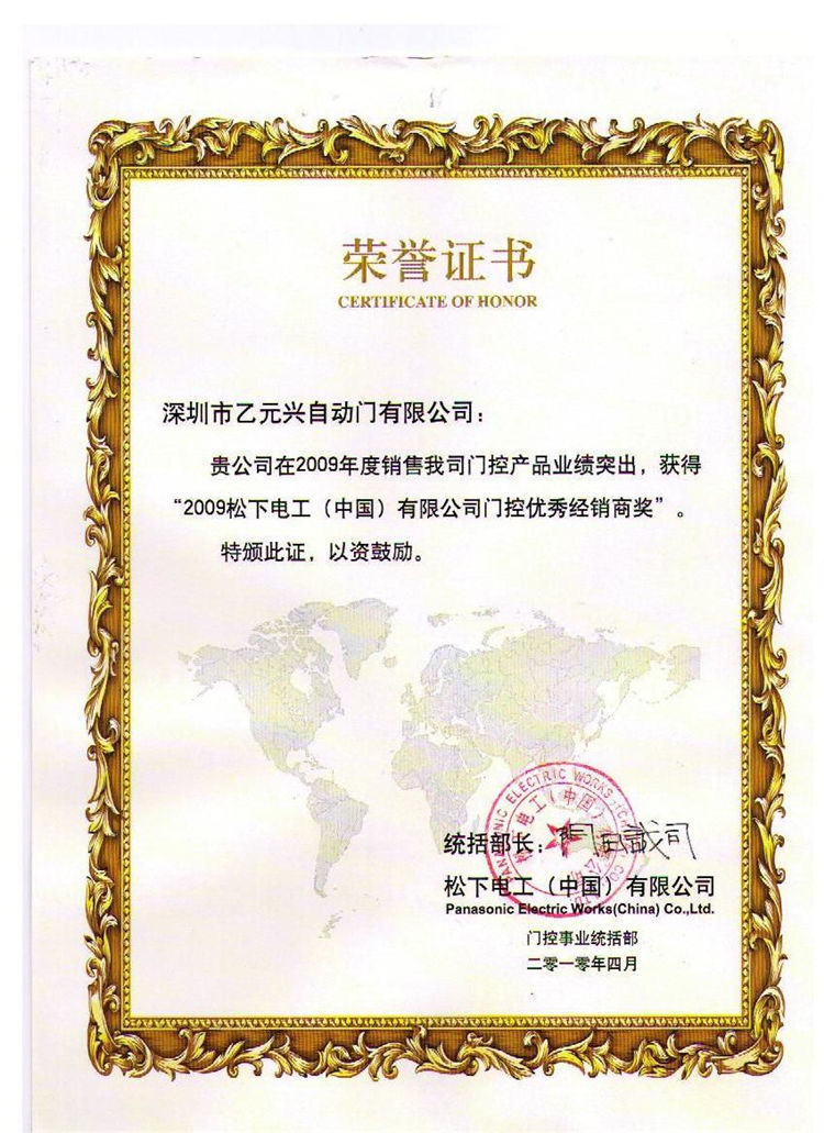 • 松下技術(shù)服務(wù)優(yōu)秀榮譽(yù)證書